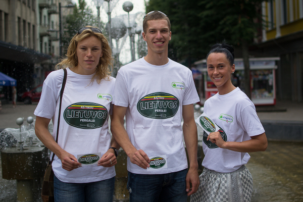 Prieš išvykdami į Londono olimpiadą lengvaatlečiai Austra Skujytė, Raivydas Stanys ir Sonata Tamošaitytė ketvirtadienį Kauno Laisvės alėjoje dalyvavo akcijos „Aš tikiu Lietuvos pergale!” pristatyme. Olimpiečiai dalijo specialius lipdukus ir bendravo su kauniečiais bei miesto svečiais.
